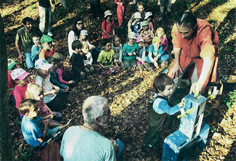 Andreas Jenny, Sohn von Trudi Gerster, begeisterte mit seiner Geschichte «Moladinee» nicht nur die Kinder der Märchler Waldspielgruppe Waldschnägg.