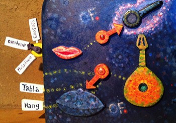 Andreas Jenny sang ein Mantra, das er musikalisch unterlegte und zum Verständnis anschliessend die deutsche Übersetzung rezitierte. Dann machte den Vorschlag, man könnte gemeinsam einen Tabla Rhythmus erarbeiten. Folglich ging Ananda Geissberger, der Organisator, in den hinteren Teil des Raumes und brachte jedem der Zuhörer eine Trommel. Andreas Jenny gab den Grundrhythmus vor und das Publikum übernahm. Mit der Zeit entwickelte sich eine Improvisation, zu der jeder individuell seinen Beitrag leistete und somit ein harmonisches Gefüge entstand. Man hörte sich gegenseitig zu und ging aufeinander ein. Wenn Andreas Jenny die Improvisation nicht sachte zu Ende geführt hätte, wäre es wohl noch bis in die frühen Morgenstunden so weiter gegangen. (Text: Jonas Lüdi)